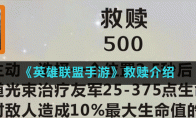 《英雄联盟手游》游戏中救赎怎么样?相信玩过端游的小伙伴对于这件装备一定不会陌生,救赎可以说是辅助性英雄都会出的一件装备,那么接下来小编为大家带来《英雄联盟手游》救赎介绍,一起来看看吧。 《英雄联盟手游》救赎介绍名称: 救赎售价: 500唯一主动: 选择一个位置2.5秒后,召唤一道光東治疗友军25-375点生命值,对敌人造成10%最大生命值的真实伤害。小兵和野怪受到250点真实伤害——30秒CD。可以在死亡的时候使用。 以上就是小编整理的关于《英雄联盟手游》救赎介绍的全部内容,更多游戏攻略请持续关注3DM手游网!