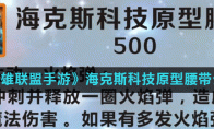 《英雄联盟手游》游戏中海克斯科技原型腰带怎么样?相信对于这件装备大家一定不会陌生,这件装备非常适合法师英雄出,为法师英雄增加法强的装备,那么接下来小编为大家带来《英雄联盟手游》海克斯科技原型腰带介绍,一起来看看吧。 《英雄联盟手游》海克斯科技原型腰带介绍名称: 海克斯科技原型腰带售价: 500唯一主动——火焰弹: 向前冲刺并释放一圈火焰弹,造成75—150魔法伤害。如果有多发火焰弹命中了相同的英雄或野怪,那么除第一发之外的每发火焰弹只造成10%伤害——60秒CD。无法穿越地形。 以上就是小编整理的关于《英雄联盟手游》海克斯科技原型腰带介绍的全部内容,更多游戏攻略请持续关注3DM手游网!