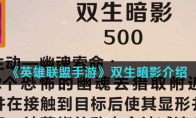 《英雄联盟手游》游戏中双生暗影怎么样?玩过端游的小伙伴们一定不会对这件装备陌生,那么在手游端中这件装备怎么样呢,接下来小编为大家带来《英雄联盟手游》双生暗影介绍,一起来看看吧。 《英雄联盟手游》双生暗影介绍名称: 双生暗影售价: 500唯一主动——幽魂索命: 召唤2个恐怖的幽魂去猎取附近的英雄,并在接触到目标后使其显形并萦绕于目标。被萦绕的敌人会被减速40%,持续时间基于幽魂已行走的距离,最多可持续5秒——60秒CD。 以上就是小编整理的关于《英雄联盟手游》双生暗影介绍的全部内容,更多游戏攻略请持续关注3DM手游网!