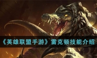 《英雄联盟手游》是一款MOBA类游戏,游戏中不同玩法的英雄不断吸引着玩家。正是如此,了解英雄的技能和其效果变得十分重要。这样可以使自己的上分过程变得更加轻松。但是一些小伙伴会问雷克顿的技能是什么?感兴趣的小伙伴随着小编一起来看看吧。希望能够帮助到你。《英雄联盟手游》雷克顿技能介绍:被动:怒之领域每次普攻都能产生怒气,若怒气值超过50,将会消耗怒气以强化技能效果。技能1:霸主狂击对附近敌人造成70物理伤害,且每命中一名敌人就会回复4生命值,并产生5怒气。 怒之领域:伤害提升至105物理伤害,回复效果提升200%。技能2:冷酷捕猎强化下次普攻以造成2次连击,击晕目标0.75秒并造成125物理伤害。 怒之领域:连击3次,击晕目标1.5秒并造成188物理伤害。技能3:横冲直撞向前冲刺,对穿过的敌人造成40物理伤害。每穿
