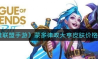 《英雄联盟手游》中蒙多律政大亨皮肤即将上线,仅需590点券就可以购买到。那么今天小编就给大家介绍一下英雄联盟手游蒙多律政大亨皮肤价格一览,有需要的小伙伴不要错过了。 《英雄联盟手游》蒙多律政大亨皮肤价格一览售价: 原价为990点券,最近处于优惠阶段,仅需590点券就可以购买到。重做内容: 新增全技能特效,以及专属回城动作。 购买方法: 1.前往道具商城进行购买。2.或者是前往游戏内的商城进行购买。注意: 律政大亨皮肤重做后升级了为传说品质的皮肤。以上就是《英雄联盟手游》蒙多律政大亨皮肤价格一览,更多游戏攻略请持续关注3DM手游网!