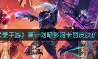 《英雄联盟手游》中源计划皮肤即将上线,预计暗影阿卡丽皮肤990点券起,那么今天小编就给大家介绍一下英雄联盟手游源计划暗影阿卡丽皮肤价格一览,有需要的小伙伴不要错过了。 《英雄联盟手游》源计划暗影阿卡丽皮肤价格介绍售价:源计划暗影阿卡丽皮肤售价预计990点券起,可能购买价格会更高。 上线时间: 将在2021.12.29的早上8:00正式上线。购买方法: 1.前往道具商城进行购买。2.或者是前往游戏内的商城进行购买。注意: 天使降临版本内上线的源计划系列皮肤有升华烬、雄心卡特琳娜、净化薇恩、火菲奥娜和暗影阿卡丽。以上就是《英雄联盟手游》源计划暗影阿卡丽皮肤价格一览,更多游戏攻略请持续关注3DM手游网!