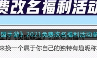 《英雄联盟手游》中免费改名福利活动在12月23日下午五点开启,每一个用户都可以免费更改ID昵称,那么今天小编就给大家介绍一下英雄联盟手游2021免费改名福利活动参加方法,有需要的小伙伴不要错过了。 《英雄联盟手游》2021免费改名福利活动参加方法一、活动介绍 12月23日下午五点起,腾讯将推出四大活动,【安全经理面对面直播】、【年度游戏安全课堂】、【英雄联盟免费改名】以及【腾讯游戏信用周】,目前改名的活动并没有开启,需要在12月23日下午五点开启,尽情期待。英雄联盟将迎来免费改名活动,每一个用户都可以免费更改ID昵称的机会,并且无需氪金购买改名卡。英雄联盟改名需要商城中的改名卡,改名卡价格为4900点券(49 元),此次是免费的获得。 二、活动参加方法 英雄联盟专场今天下午6点半开始。备受关注的免费改名卡活动官