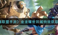《英雄联盟》手游中的金龙耀世回城特效是新上线的回城特效,那么英雄联盟手游金龙耀世回城特效怎么获得呢?相信还有很多小伙伴不知道,下面是3DM手游小编给大家分享的英雄联盟手游金龙耀世回城特效获取攻略,感兴趣的小伙伴们一起来看看吧。 金龙耀世回城特效获取攻略【获取攻略】 金龙耀世的获得方法是在观看直播抽奖活动中抽奖。玩家在观看英雄联盟手游直播参与活动时,主播会进行抽奖,被抽中的玩家就可以获得金龙耀世这个回城特效。 以上就是小编带来的英雄联盟手游金龙耀世回城特效获取攻略的全部内容,更多相关资讯,请关注3DM手游网。