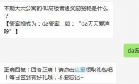 天天爱消除2020年4月8日每日一题题目是:【消除指定棋子或障碍,需要使用什么道具】,大家知道答案是什么吗?下面3DM手游网小编就给大家带来了天天爱消除今日每日一题答案,回答正确就可以获得一次幸运扭蛋机抽奖资格,还在犹豫吗?速来答题吧!>>>>>小编推荐:《天天爱消除》2020年每日一题答案大全>>>>>小编推荐:《天天爱消除》每日一题答案大全(2019往期)《天天爱消除》2020年4月8日每日一题答案题目:消除指定棋子或障碍,需要使用什么道具正确答案:daA【每日一题】:微信搜索“天天爱消除”,关注公众号去领每日一题福利哦!点击菜单栏【爱看看】→【每日一题】,即可在答对题后抽奖,100%中奖哦!3星经验宠、积分*88,还有经典模式及冒险模式的各种道具