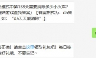 闯关模式中第138关需要消除多少小火车?这是天天爱消除2月26日每日一题题目,相信很多玩家都还不知道今天题目的答案是什么吧?下面给大家带来了天天爱消除2月26日每日一题正确答案,一起来看看吧。>>>>>《天天爱消除》每日一题答案大全 天天爱消除2月26日每日一题题目:闯关模式中第138关需要消除多少小火车? 正确答案:da5 玩法介绍:天天爱消除微信里面的每日一题相信很多玩家们每天都会准时参与了,每天回答正确就可以获得一次幸运大转盘抽奖资格,可获得积分、金币和宠物等好礼,还等什么呢,赶快加入吧!