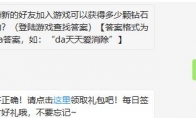 邀请新的好友加入游戏可以获得多少颗钻石奖励?这是天天爱消除3月7日每日一题题目,相信很多玩家都还不知道今天题目的答案是什么吧?下面给大家带来了天天爱消除3月7日每日一题正确答案,一起来看看吧。>>>>>《天天爱消除》每日一题答案大全 天天爱消除3月7日每日一题题目:邀请新的好友加入游戏可以获得多少颗钻石奖励? 正确答案:da1 玩法介绍:天天爱消除微信里面的每日一题相信很多玩家们每天都会准时参与了,每天回答正确就可以获得一次幸运大转盘抽奖资格,可获得积分、金币和宠物等好礼,还等什么呢,赶快加入吧!