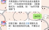 月亮宠甜心守护的攻击成长值是多少?这是天天爱消除3月20日每日一题题目,相信很多玩家都还不知道今天题目的答案是什么吧?下面给大家带来了天天爱消除3月20日每日一题正确答案,一起来看看吧。>>>>>《天天爱消除》每日一题答案大全 天天爱消除3月20日每日一题题目:月亮宠甜心守护的攻击成长值是多少? 正确答案:da210 玩法介绍:天天爱消除微信里面的每日一题相信很多玩家们每天都会准时参与了,每天回答正确就可以获得一次幸运大转盘抽奖资格,可获得积分、金币和宠物等好礼,还等什么呢,赶快加入吧!