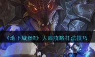 《地下城堡2:黑暗觉醒》大眼怎么打呢?大眼是游戏中很多玩家遇到的难题,想要通关并不容易,下面是3DM小编给大家带来的《地下城堡2》大眼攻略打法技巧,还没有通关的小伙伴可以参考一下哦!>>>>小编推荐:《地下城堡2》2020礼包兑换码大全 《地下城堡2》大眼攻略打法技巧技能设置:双火刑:两人群攻,火烧单体/火法单体血量最低/剑豪盾击血量最低。击杀小弟后长按关盾击开3。 细节1、英雄1600技巧提供约17命中,因此所有人面板命中总和>80,最好是满命中;细节2、魔石选择,比如我的不朽蛮子技巧较低,魔石选择15命中,创世蛮子带高体巨龙,火法带13命中,剑豪由于自身的高命中,选择了15狂暴。细节3、其实不算细节,就是拼脸,只要发出如下情况即可稳过:剑豪开局晕住一个小弟,另外一个小弟出手一次