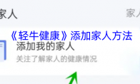 打开轻牛健康APP,点击首页的“健康”选项,接着滑动或点击相关按钮进入“添加我的家人”界面,然后点击“添加用户”按钮,并按照页面提示输入家庭成员的信息,即可完成家庭成员的添加。这样设置操作过后,就能够轻松管理家人的健康数据。轻牛健康怎么添加家庭成员?1、打开轻牛健康软件,点击前往首页界面。2、滑动点击添加我的家人界面,如图。3、点击添加用户按钮即可成功添加别人的数据。以上就是小编带来的轻牛健康怎么添加家庭成员?添加家人方法,更多相关资讯教程,请关注3DM手游网。