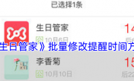 打开生日管家应用,进入“生日”界面,点击左上角的选项进入批量管理界面,然后选择“批量修改提醒时间”项,接下来,你可以选择一个或多个用户,根据需求统一设置提醒时间,让你轻松管理大量生日提醒,确保每一个重要日子都能被准时记起。生日管家怎么批量修改提醒时间?1、打开生日管家,点击“生日”,然后点击左上角如图选项;2、进入到“生日管家”界面,点击“批量修改提醒时间”项;3、在“批量修改提醒时间”界面,选择一个或多个用户便可以进行批量操作啦!以上就是小编带来的生日管家怎么批量修改提醒时间?批量修改提醒时间方法,更多相关资讯教程,请关注3DM手游网。