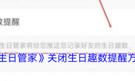 进入生日管家主界面后点击右上角的“我的”,接着在“我的”界面中点击“设置”,然后在设置界面中找到并点击“提醒”,最后在新跳转的界面中点击“生日趣数提醒”右侧的按钮,将其关闭即可。当按钮颜色变成灰色时,就表示你已成功关闭了生日趣数提醒功能。生日管家怎么关闭生日趣数提醒?1、打开生日管家App,在主界面点击右上角的“我的”,在我的界面中点击“设置”2、在设置界面中点击“提醒”3、在跳转的新界面中点击“生日趣数提醒”右侧的按钮,当按钮颜色变成灰色,则表示关闭该功能成功。以上就是小编带来的生日管家怎么关闭生日趣数提醒?生日管家关闭生日趣数提醒方法,更多相关资讯教程,请关注3DM手游网。