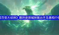 百变大侦探撰异录湖城探案是个6人古风剧本,一部上古奇书,一段传奇历史,一宗陈年冤案,将故事的见证者们汇聚与此。白衣少年手握判官笔,行云流水,笔走昆仑。“起!”一只巨大的青鸾缓缓从书中醒来,张开双翼,载着众人飞向天际。“世界上从来没有从天而降的英雄,只有挺身而出的凡人。”雨打灯难灭,风吹色更明。若飞天上去,定作月边星。接下来给大家带来了《百变大侦探》撰异录湖城探案凶手及真相介绍,一起了解一下详情吧! 《百变大侦探》撰异录湖城探案凶手及真相介绍人物简介:顾钧:男 ,学者(视角缺失多,适合抗压能力强的玩家)殷白:男 ,十级脑震荡后遗症患者(视角缺失多,适合心理素质强的玩家)竺之衡:男,道士(适合信息整合能力强且喜欢分享故事的玩家)阿黎:女,风水世家传人(难度较高,适合善于挖掘细节以及喜欢分享故事的玩家)孟梦:女,电视