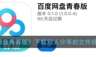 百度网盘青春版当前是不限制下载速度的,或者说相对于大部分其它的网盘工具来说,下载速度有很大的提升。使用百度网盘青春版的时候,很多小伙伴想要下载别人分享的链接,但是不知道该怎么弄。下面小编就为大家带来了详细的介绍,我们一起来看看吧! 百度网盘青春版怎么下载别人分享的链接?1、百度网盘青春版暂不支持下载别人分享的链接,且无法进行文件分享,无法下载百度网盘的分享链接,只能下载自己上传、导入的网盘资源。2、百度网盘青春版是一个类似于个人网盘的网盘应用,每个用户拥有三次从百度网盘导入资源的机会,且个人空间只有10G。3、大家在使用百度网盘青春版时,只能从百度网盘导入文件,或者从自己的设备上传文件。网盘中的文件无法分享给其他用户,自然也无法下载别人分享的链接。 以上就是小编带来的百度网盘青春版怎么下载别人分享的链接?下载别