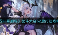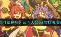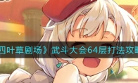 《四叶草剧场》游戏中武斗大会64层很多玩家不知道用什么阵容打,那么今天小编就给大家介绍一下四叶草剧场武斗大会64层打法攻略,有需要的小伙伴不要错过了。 《四叶草剧场》武斗大会64层打法攻略武斗大会64层,芭芭雅伽是6人权之一必须要有个3星核心:白给层,宣传新皮肤的,巴风特防御全队最低吸引火力,如果巴风特高星,别的角色防御不够可以多带点防御宝石 现在的版本因为秋田澪的合计和巴风特反击冲突,巴风特第一回合会暴毙,不过没关系4打5即可剧照:宿敌1+9;宿敌2+9;优质睡眠+9注:昆菇在4号位巴风特防御全队最低,高星巴风特注意进入战斗不要抢了昆菇攻击最高,可少带点攻击宝石前排: 1号位:圣乔治特训B,宝石(4血),防御>巴风特,1.7W血+幽灵铠甲(+15幽灵铠甲金头,+18幽灵铠链项链,+15幽灵铠甲戒指)2号