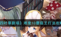 四叶草剧场游戏中难度10蘑菇王的难度比较大。相信有很多小伙伴不是很清楚难度10蘑菇王怎么打,接下来就让小编给大家带来《四叶草剧场》难度10蘑菇王打法攻略,感兴趣的小伙伴一起来看看吧。《四叶草剧场》难度10蘑菇王打法攻略这个攻略是高等级巴风特或者没有不合理报酬1的过关方法。维克蒂亚可以换成小鹿这种第二回合有控的。第二个随便放个1级织毛衣工具人。要求:剧照要求高难度委托1和织毛衣。高难度委托1的加速要给到控制手(控制手暴击效果全队最高,而不是暴击率全队最高),让控制手速度191以上,让控制手扛住蘑菇王第一下A以后第二轮能控住蘑菇王。原理:开局俩不死+工具人倒地直接叠三层织毛衣。第二轮控制手控住蘑菇王。第三轮俩不死加控制手倒地又叠三层织毛衣。这样织毛衣可以烧96%的血,剩下的由僵尸叠毒补上。巴风特只要扛三轮(第1,3