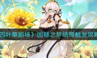 四叶草剧场困顿之梦结局怎么触发?《四叶草剧场》游戏中困顿之梦结局很多玩家不知道如何触发,那么今天小编就给大家介绍一下四叶草剧场困顿之梦结局触发攻略,有需要的小伙伴不要错过了。《四叶草剧场》困顿之梦结局触发攻略一定要团长领队,切记不能蔚海丝梦幻药剂/2层随机触发3层入口,进入深层梦境用团长技能仓促前进把各个属性弄成0,这样就100%失败了逛街3选项选几率最小的,失败5次以上,达成困顿之梦遇到有人问你问题还选第三个谁在说话 以上就是《四叶草剧场》困顿之梦结局触发攻略,更多游戏攻略请持续关注3DM手游网!