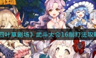 四叶草剧场武斗大会16层怎么打?《四叶草剧场》游戏中武斗大会16层用什么阵容打呢?今天小编就给大家介绍一下四叶草剧场武斗大会16层打法攻略,有需要的小伙伴不要错过了。《四叶草剧场》武斗大会16层打法攻略武斗大会16层 通过白蛇赛利卡的被动驱散,赌第二回合白开大招注:有很小的几率对面的沉默会使我方放不出技能,致使偷心叠的慢,对面无限回血,到40回合对面满血就重开下就行,一般十几回合结束战斗剧照:祝你好梦1 ;偷心+9;优质睡眠+9前排1号位:天使盾特训B,宝石4血,1.8W血幽灵铠甲2号位:昆菇特训B,宝石2血2速,速度大于200,1.6W血幽灵铠甲后排3号位:唢呐特训A,宝石2血2速,速度大于200,1.5W血撑血套(有幽灵上幽灵)4号位:白特训B,宝石4血,1.5W血撑血套(有幽灵上幽灵)5号位:白蛇赛利卡特