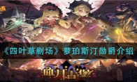 四叶草剧场萝珀斯汀勋爵怎么样?在游戏内很多玩家都想知道,萝珀斯汀勋爵这个角色的属性怎么样。接下来就让小编给大家带来《四叶草剧场》萝珀斯汀勋爵介绍,感兴趣的玩家一起来看看吧。《四叶草剧场》萝珀斯汀勋爵介绍萝珀斯汀勋爵稀有度:SR萝珀斯汀勋爵从小就有着属于自己的音乐梦想。她会特地远离嘈杂的族群,独自来到草原倾听风吹拂大地的声音,倾听水珠溅落的声音,倾听自己渴望旅行的声音。虽然渴望旅行,萝珀斯汀勋爵却又明白自己容易被惊吓的性格并不适合前往陌生的环境。于是她将这些想法藏在心底,期待某天能够开出勇气的花朵。获得勇气的契机来自另一位族人,在将她视为仓鼠族未来的英雄之后,萝珀斯汀勋爵也悄悄地开始了自己的旅行。以上就是《四叶草剧场》萝珀斯汀勋爵介绍的全部内容了,更多手游攻略请关注3DM手游网!