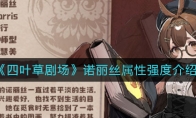 四叶草剧场诺丽丝怎么样?《四叶草剧场》游戏中诺丽丝是新上线的角色,那么她的属性强度怎么样呢?今天小编就给大家介绍一下四叶草剧场诺丽丝属性强度,有需要的小伙伴不要错过了。 《四叶草剧场》诺丽丝属性强度介绍[新演员登记]诺丽丝稀有度:SSR自小生活在森林的诺丽丝一直过着平淡的生活,她没什么特别的兴趣爱好,也找不到生活的目标。直到有一天,她在觅食时无意捡到了一本破损的书籍,看着书中的图画,努力拼凑着其中的内容,诺丽丝第一次感受到了快乐。自此之后,看书便成了她生活的重心。听说血月古堡中有一座巨大的藏书馆,爱书如痴的诺丽丝立刻启程前往。在与古堡主人达成协议后,诺丽丝可以无拘无束地看书,但作为交换,如果有人威胁到古堡,她必须守护好这座藏书馆。 以上就是《四叶草剧场》诺丽丝属性强度介绍,更多游戏攻略请持续关注3DM手游网!