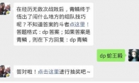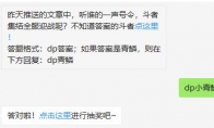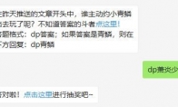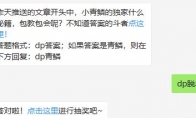 斗破苍穹手游2019年5月18日微信每日一题是:在昨天推送的文章开头中,谁主动约小青鳞出去玩了呢?这一题的答案是什么呢?不知道的小伙伴,一起看看下面3DM小编给大家带来的斗破苍穹手游5月18日微信每日一题答案吧。>>>>《斗破苍穹》手游微信每日一题答案汇总(每日更新) 斗破苍穹手游2019年5月18日微信每日一题题目:在昨天推送的文章开头中,谁主动约小青鳞出去玩了呢?答案:dp萧炎少爷答题格式:dp答案;如果答案是青鳞,则在下方回复:dp青鳞以上就是小编为大家分享的斗破苍穹手游今日微信每日一题答案,答对问题可获得斗破苍穹手游微信神秘炼丹的抽奖资格,抽奖可获得银币、金币和洗练石等游戏道具,希望大家能抽到满意的游戏资源哦!