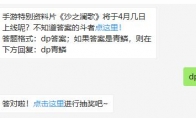 斗破苍穹手游4月16日微信每日一题是:消耗30金砂可兑换什么奖励呢?这一题的答案是什么呢?不知道的小伙伴,一起看看下面3DM小编给大家带来的斗破苍穹手游4月16日微信每日一题答案吧。斗破苍穹手游4月16日微信每日一题>>>>《斗破苍穹》手游微信每日一题答案汇总(每日更新) 题目:消耗30金砂可兑换什么奖励呢? 答案:dp子火源火 答题格式:dp答案;如果答案是青鳞,则在下方回复:dp青鳞以上就是小编为大家分享的斗破苍穹手游4月16日微信每日一题答案,答对问题可获得斗破苍穹手游微信神秘炼丹的抽奖资格,抽奖可获得银币、金币和洗练石等游戏道具,希望大家能抽到满意的游戏资源哦!