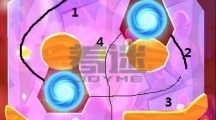 割绳子魔法魔法森林3-16关,这一关重点在于规划路线,其实难度并不大。根据下图所示的路线来走。轻松拿到三颗星星过关毫无压力!来,自己动手试试吧。先将冰块按照线条1、2划成通道,割断糖果的绳子,让其成功到达线条2的尾端。接着改变主角形态吃到右边的星星后,按照线条3、4划掉冰块让糖果可以按照线条滚动,最后糖果即可成功掉入主角嘴中。