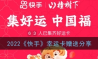 在2022快手集卡活动中,幸运卡是很多小伙伴都比较需要的卡片,但是幸运卡也比较难获得,很多小伙伴都差这一张卡片。这里小编就为大家带来了快手幸运卡分享,2022快手幸运卡赠送免费领取,有需要的小伙伴们快一起来看看吧! 2022《快手》幸运卡赠送分享:1、首先我们打开快手app,进入春节活动后,点击右下角的“集好运”打开 2、大家可以免费抽取三次卡片,有机会获得随机福卡,还能通过做任务来获取抽卡次数,点击幸运卡打开 3、如果我们自己有多余的幸运卡,可以赠送给好友,好友拥有幸运卡的话,可以让好友赠送幸运卡给你。 快手极速版最新邀请码:【453803678】,新用户可直接保存下方图片用快手极速版app扫码,看1分钟视频领54元红包: 以上就是小编带来的快手幸运卡分享,2022快手幸运卡赠送免费领取,更多相关资讯教程,请