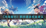 在终焉誓约游戏中羁绊速递是三个卡池中的一个,很多玩家还不清楚这个卡池是否值得抽。下面就让小编给大家带来《终焉誓约》羁绊速递抽取建议,感兴趣的小伙伴们一起来看看吧。 《终焉誓约》羁绊速递抽取建议抽取建议:羁绊速递池值得玩家抽取,玩家可以根据自身需求来选择抽取。1、羁绊速递池SSR英雄抽取的概率有5%,比友情征募和英雄许愿池稍高。2、卡池中还有很多的羁绊材料,比如紫影精魄、深海源晶、蓝萤精魄等可以抽取。 羁绊速递池基础概率:SSR英雄:5%随机SSR星石礼包:15%随机SR星石礼包:25%随机R星石礼包:15%紫影精魄:10%深海源晶:10%蓝萤精魄:10%时影源晶:10%友情征募基础概率:SSR英雄:4.05%SR英雄:40.50%R英雄:37.5%材料 17.95%英雄许愿基础概率:SSR英雄:4.05%SR英