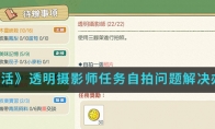 在小森生活手游中透明摄影师任务自拍问题怎么解决呢?在透明摄影师的任务中,最后一个任务是自拍。打开任务详情说是要三脚架,但是到处都找不到。小伙伴们不知道该怎么去自拍,那么想知道透明摄影师任务自拍问题解决办法的就跟随小编一起来看看吧。透明摄影师任务自拍问题解决办法介绍:按一下定点拍摄就是自拍了,这个问题就解决啦!以上就是小编整理的小森生活透明摄影师任务自拍问题解决办法介绍,想知道更多相关资讯攻略的请关注3DM手游网。