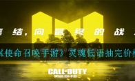 使命召唤手游灵魂低语多少钱出?很多小伙伴对于灵魂低语的价格不太清楚,那么小编就给大家介绍一下,下面小编给大家带来《使命召唤手游》灵魂低语抽完价格,还不清楚的小伙伴赶紧来看看吧。《使命召唤手游》灵魂低语抽完价格使命召唤手游灵魂低语套装抽满总共需要抽九次,每次所需价格与合计价格如下:第一次转盘价格:3元第二次转盘价格:5元第三次转盘价格:10元第四次转盘价格:20元第五次转盘价格:40元第六次转盘价格:90元第七次转盘价格:130元第八次转盘价格:180元第九次转盘价格:350元合计转盘价格:830元以上就是小编给大家带来的《使命召唤手游》灵魂低语抽完价格,更多手游攻略请关注3DM手游网!