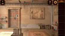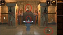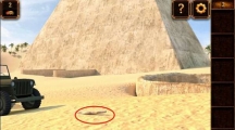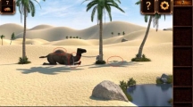 不知不觉中我们又走出了金字塔,前方正好有匹骆驼,否则在沙漠中行走实在是太费力了。走进了才发现这骆驼身下似乎藏着什么,看样子得想办法让它起身了,大家又想到什么好主意了吗?第7关攻略 来到第七关游戏,首先分别点击图示红色标记处收集三种物品。 点击池塘旁边的小石块,收集到一张地图。 点击最右边的一颗椰子树,用刀割下树皮。 照上图所示合成渔网。 用渔网获取一只椰子。 将椰子在池塘旁的大石头上敲破。 用剩下的半边椰子壳在池塘上装满水。 把装好的水喂给骆驼。 骆驼喝完水后起身,在它下面发现一样物品。 点击收集到的地图,注意上图小编用红色方框标记的地方,这是本关能否顺利过的关键!地图提示我们左边第一颗椰子树的正对面有秘密,位置大概就是小编用红色箭头标记处,玩家可以用树皮在该处挖出一个地洞。 地洞下面有一个盒子,将收集到的物