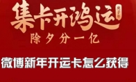微博集卡开鸿运活动中,用户需要集齐开运卡,这样才能瓜分红包。那么如何才能获得开运卡呢?其实有多种方式都可以免费领取哦!这里小编就来为大家介绍一下微博新年开运卡的获得方法,一起来看看吧! 微博新年开运卡怎么获得? 1、点击打开微博的个人页面,然后点击打开页面上的“新年开运卡”入口。 2、然后在页面上点击“获取更多的开运卡”。 3、我们可以完成任务获得相应的开运卡哦!比如签到、刷微博、看视频、加关注、邀好友、发绿洲等等方式。 任务1:来活动页面签到,可随机获得1张开运卡;任务2:在微博客户端关注流刷微博,可有机会获得开运卡,每天最多3张任务3:在微博-视频社区观看视频10秒以上,可获博1张开运卡;任务4:关注5个喜爱的博主,可获得1张开运卡任务5:邀好友参与活动,可获得一张开运卡,每天最多5张(全程每位用户只能被邀