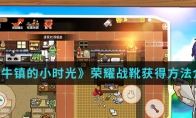 在奶牛镇的小时光手游中荣耀战靴怎么得呢?荣耀战靴在游戏中是帝国最高荣誉的象征,那么该怎么获得这个荣誉呢?想知道荣耀战靴获得方法的就跟随小编一起来看看吧。荣耀战靴获得方法介绍:价值:1000类型:鞋子速度+15防御+10免伤+5闪避+10装备介绍:古帝国最高荣誉的象征!获取途径:山洞120层奖励以上就是小编整理的奶牛镇的小时光荣耀战靴获得方法介绍,想知道更多相关资讯攻略的请关注3DM手游网。