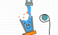 快乐玻璃杯第283关怎么过?在这一关画面顶部有一根开口朝下的水管,玻璃杯就倒悬在水管开口下面,在它左边是一个方块,下方是两个可转动物体。这一关玻璃杯怎么才能装满水呢?快乐玻璃杯第283关攻略 通关方法:如上图所示画线,一端钩住玻璃杯,一端钩住方块。PS:方法并不唯一。