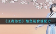 江湖悠悠酸鱼汤怎么做?在游戏内很多玩家都想知道,料理酸鱼汤的制作方法是什么。下面就让小编给大家带来《江湖悠悠》酸鱼汤食谱配方,感兴趣的小伙伴们一起来看看吧。《江湖悠悠》酸鱼汤食谱配方配方:鱼 + 金针菇 + 红椒 + 豆芽前往偏好:西方(梁洲、雍州)简介传闻,大理国边境山脚下,有一位名叫阿娜的侗族姑娘,貌美善舞,擅酿美酒。其酒有幽兰之香,清如山泉,香醇可口。一日,同乡送了几条新鲜的鱼到阿娜家中,她用自酿的泉水酒和酸汤做了一道牙双侗族祖传的酸汤鱼,同乡品尝后觉得美味无双。该制作技法后来在苗疆侗区广为流传,并在各地形成各带特色的酸汤鱼。喂养宠物可获得的亲密度优品/极品/绝品/神品暂无数据售价优品/极品/绝品/神品无\1980\2970\3960食材获取:金针菇:在庭院的田地中进行播种、浇水,等待农作物成熟后进行收获