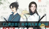 在江湖悠悠中有很多小伙伴都很想知道游戏中比较常见的奇香肉丸应该怎么做,今天小编给大家带来了《江湖悠悠》奇香肉丸菜谱介绍,感兴趣的小伙伴一起来看看吧,希望可以帮助到大家。《江湖悠悠》奇香肉丸食谱介绍一、旅行趋向东方(徐州、青州)二、食物配方三、宠物亲密度[极\绝\神]暂无数据四、售价[极\绝\神]1024\无\无\无以上就是小编整理的关于《江湖悠悠》奇香肉丸食谱介绍的全部内容,更多游戏攻略请持续关注3DM手游网!