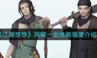 江湖悠悠凤尾一击技能强度怎么样?《江湖悠悠》游戏中很多玩家不清楚凤尾一击的技能情况,那么今天小编就给大家介绍一下江湖悠悠凤尾一击技能强度,有需要的小伙伴不要错过了。《江湖悠悠》凤尾一击技能强度介绍凤尾一击:凤尾一击,其极其看脸的破甲效果,决定了它是可以脱离体系单独存在的不过都说看脸了,聊以慰藉吧叠落花用,伤害刮痧。四个上品武学,根据我的测试,最快打满一套连招的操作为:长歌行(开局秒放)——折月剑刺(紧跟着放)——强化平a——长歌行——剑荡月牙——折月剑返——强化平a——飞影逐月以上就是《江湖悠悠》凤尾一击技能强度介绍,更多游戏攻略请持续关注3DM手游网!