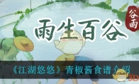 在江湖悠悠中不同的食物会给玩家带来不同的属性,很多小伙伴都很想知道游戏中的青椒酱怎么做,今天小编给大家带来了《江湖悠悠》青椒酱食谱配方介绍,感兴趣的小伙伴一起来看看吧,希望可以帮助到大家。《江湖悠悠》青椒酱食谱介绍青椒酱食谱配方:青椒*2,辣椒,生姜前往偏好:西方(梁洲、雍州)喂养宠物可获得的亲密度:极品 绝品 神品144 173 216以上就是小编整理的关于《江湖悠悠》青椒酱食谱介绍的全部内容,更多游戏攻略请持续关注3DM手游网!