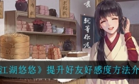江湖悠悠是一款佛系休闲养成模拟经营游戏,很多小伙伴都很想知道在游戏中怎么才能提升自己和好友的好感度,今天小编给大家带来了《江湖悠悠》提升好友好感度方法介绍,感兴趣的小伙伴一起来看看吧,希望可以帮助到大家。《江湖悠悠》提升好友好感度方法介绍1、访问好友庭院好感+1/次,每天无上限(也可能上限很高我没测到)2、待客品茗一天内在同一个好友处只能享用酒或菜一次,目前绝品和神品不能用来待客①极品酒\菜+35②优品酒\菜+25③良品酒\菜+15④劣品酒\菜+103、信件往来①急件单程+5/封,优点是快②普件单程+5/封,寄出后第二天早上大概7点寄到对方信箱4、战斗切磋好友来一趟庭院只能切磋一次①失败+2②胜利+2,并附送800铜钱5、送花当好友角色以实体形式来到自己院落做客时,可以给对方送出花灯种子结出的鲜花,+20/朵,
