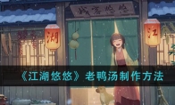 江湖悠悠老鸭汤怎么做?在游戏内我们可以收集不同的材料,制作出很多不同的食物,其中老鸭汤很多玩家不知道怎么做。接下来就让小编给大家带来老鸭汤制作方法的内容,感兴趣的小伙伴一起来看看吧。 《江湖悠悠》老鸭汤制作方法老鸭汤=鸭肉+玉米+水+生姜 食材获取 1、鸭肉:在任务中获得,NPC处购买。2、生姜:在田里种植获得。3、玉米:种植获得,种子可以在市集购买。4、水:在晴天的时候打水获得。以上就是《江湖悠悠》老鸭汤制作方法的全部内容了,更多手游攻略请关注3DM手游网!