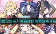 第七史诗是一款十分火爆的二次元手游,其中游戏中有许多的神器,相信很多玩家不知道神器纯白信赖有什么用,那么神器中的纯白信赖有什么用呢?下面小编为大家带来了神器纯白信赖效果介绍,希望对感兴趣的玩家有所帮助,一起来看看吧。 第七史诗纯白信赖有什么用神器是独立于装备之外的特殊装备,每个英雄只能携带1个神器。神器除了能给我们带来属性加成外,还会有各种强大的神器效果,因此是我们增强阵容的重要手段。 神器背景:很久以前,暗影精灵与人类交流时,赠予了剑和服饰作为信赖的象征。其中蕴含了精灵的祝福和暗影妖精的魔力。它们几经易主,最后由于人类王国的灭亡,落入了札哈克的手中。以上就是3DM小编整理带来的《第七史诗》神器纯白信赖效果介绍攻略,更多相关游戏攻略,请关注3DM手游网!