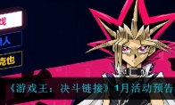 马上就到1月了,很多小伙伴都很想知道游戏王决斗链接在1月都会上线什么活动,今天小编给大家带来了《游戏王:决斗链接》1月活动预告。感兴趣的小伙伴一起来看看吧,希望可以帮助到大家。《游戏王:决斗链接》1月活动预告【1月上旬】1周年限定活动!国服1周年限定活动即将开启!参与活动可获得限定卡片等豪华奖励!【1月上旬】王家的财宝再升级!“王家的财宝”追加典藏财宝典藏财宝追加内容为大量经验值及决斗奖励,助力角色快速升级!【1月中旬】决斗寻宝通过决斗不断突破更深的楼层,获得活动限定卡片及宝石等奖励吧!隐藏楼层也会出现!加油发掘更多宝藏吧!【1月中旬】决斗链接国服1周年纪念活动!为纪念国服上线1周年,将会送出大量豪华奖励!【1月下旬】D.D.城堡再临!D.D.城堡出现在决斗世界!通过连续决斗击败盘踞在各层的“拦路强敌”,不断向