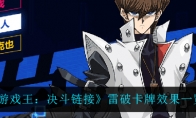 游戏王决斗链接即将在1月1日上线迷你卡盒圣洁光耀卡盒。很多小伙伴都很想知道其中的雷破怎么样,今天小编给大家带来了《游戏王:决斗链接》雷破卡牌效果一览。感兴趣的小伙伴一起来看看吧。 《游戏王:决斗链接》雷破卡牌效果一览「雷破」丢弃一张手牌,选择场上存在的一张卡为对象发动,破坏该卡牌。发动的时机非常自由,只要事先覆盖好此卡,就可在最恰当的时机破坏对手的关键卡! 以上就是小编整理的关于《游戏王:决斗链接》雷破卡牌效果一览的全部内容,更多游戏攻略请持续关注3DM手游网!