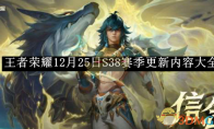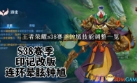 王者荣耀s38赛季更新了哪些内容?王者荣耀这款游戏已于今日完成了赛季更新,那么是不是还有很多游戏玩家到现在还不知道s38赛季更新了哪些内容了,相信很多游戏玩家还不是很了解吧,接下来小编就为大家带来王者荣耀s38赛季更新了哪些内容的详细介绍,感兴趣的游戏玩家接下来可以和小编一起来看看,希望可以帮助到大家哦。 王者荣耀s38赛季更新内容一览12月25日会上线太乙真人赛季皮肤、牛魔赛年皮肤、苍新皮肤,其中苍的新皮肤可以通过活动免费必得,所以这三款皮肤都可以免费拿到。 12月30日会上线典韦的新皮肤,参与【福气刮刮乐】活动可免费必得。 1月1日会上线嬴政的首款传说皮肤、姬小满的联动史诗皮肤、马超的9级战令勇者皮肤、孙膑的1级战令史诗皮肤、影的首款皮肤。其中嬴政新皮肤首周折扣990点券,姬小满新皮肤首周折扣710点券,战