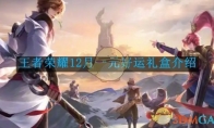 王者荣耀12月一元好运礼盒有什么?王者荣耀这款游戏里还有很多福利活动,这些活动玩家都是可以一键参与的,当然游戏玩家在参与活动后可以获得相应的游戏奖励的,那么是不是还有很多游戏玩家还不了解这个活动的,接下来小编就为大家带来王者荣耀12月一元好运礼盒有什么的详细介绍,希望小编的分享可以帮助到屏幕前的玩家,欢迎大家来阅读哦。王者荣耀12月一元好运礼盒怎么样1、上架日期:自2024年12月1日零时起至12月31日午夜时分止。2、礼盒定价:12月份的好运礼盒售价为10点券,每人限购一次。3、礼盒内容:开启礼盒即可确保获得2个皮肤碎片、100个铭文碎片,以及以下任选其一的额外奖励:随机奖励包括:含有一张皮肤或7日体验卡(可选角色包括鲁班七号之电玩小子、项羽之苍穹之光、蔡文姬之舞动绿茵、诸葛亮之黄金分割率)。 4、抽奖概率: