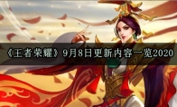 《王者荣耀》9月8日更新了哪些内容?游戏在今天进行了版本更新,很多玩家都在关注在本次更新后会加入哪些全新的玩法和活动,距爆料,在本次更新后会加入全新的99公益活动,那么接下来小编为大家带来《王者荣耀》9月8日更新内容汇总2020,一起来看看吧。《王者荣耀》9月8日更新内容汇总2020亲爱的召唤师: 我们计划在2020年9月8日8:30-9:30对全服进行不停机更新。【更新时间】9月8日8:30-9:30【更新方式】不停机更新由于此次为不停机更新,维护完毕后即可正常进入【维护期间会有短暂入口维护的情况】;维护时已经登入游戏的玩家不受任何影响。【更新范围】全服本次更新大小安卓约9MB,iOS约11MB,建议您在wifi环境下进行更新操作。【更新内容】 99公益日参与活动送好礼,廉颇新皮肤限时秒杀【99公益】集合做好