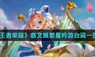 《王者荣耀》游戏中蔡文姬繁星吟游皮肤台词是什么?相信很多小伙伴都在关注这款皮肤优化后的台词是什么,毕竟好的台词在游戏中也为皮肤进行加分,那么接下来小编为大家带来《王者荣耀》蔡文姬繁星吟游台词一览,一起来看看吧。皮肤展示 上线时间 下线时间 台词欣赏 《王者荣耀》蔡文姬繁星吟游台词一览星光抚慰灵魂,音乐治愈人心仰望星空,是我写诗的灵感你这颗坏掉的小种子嘘,看到流星要先许愿希望,始于星空献给生命的诗篇,永垂不朽飞舞战场的美少女,大活跃~~左三圈,右三圈,扭一扭,转一转……人家也是loli控~心有多大,舞台就有多刺激~~男神是孟德大人,喜欢的宠物是阿典,梦想是养只羊驼~做个狂热又任性的魔女,把帅气的男朋友带回家~大人是种邪恶、可怕、爱说谎的生物不要欺负我,会把你弄哭的哟~~宝宝不开心,宝宝有小情绪了逗~~你~~玩~