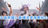王者荣耀是一款非常火热的MOBA类型手游,受到了很多小伙伴的喜爱和关注,那么王者荣耀亲密度昵称都是什么呢?还不知道的小伙伴快来一起看看吧。 《王者荣耀》新增亲密度昵称介绍在经过前段时间的投票后,王者荣耀亲密度昵称大升级,新增了很多专属亲密度昵称,分别是:一、恋人 小宝贝 亲爱的 大猪蹄 小姐姐二、闺蜜 小仙女 男闺蜜 塑料花 集美 姐妹三、死党 铁憨憨 大兄弟 老铁 大腿四、基友 老司机 工具人 背锅侠 拖油瓶 大佬在版本更新后,召唤师可以在游戏内【游戏关系】-【亲密关系】面板中使用以上亲密度昵称,并在loading界面进行展示。以上就是本期王者荣耀新增亲密度昵称介绍的全部内容,要想获取更多游戏资讯请点击关注3DM手游网。
