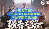 《王者荣耀》2月25日更新了收集英勇勋章兑伽罗新星元的活动,不少网友想知道怎么才能快速获得英雄徽章,接下来就让3DM小编给大家带来《王者荣耀》2月25日收集英勇勋章兑伽罗新星元攻略。《王者荣耀》2月25日收集英勇勋章兑伽罗新星元攻略荣耀值得分享,胜利坚不可摧,参与箭羽风息系列活动,收集【英勇勋章】送伽罗星元-气若幽兰·头饰、伽罗-箭羽风息体验卡等好礼,气若幽兰系列其他部件可通过稷下修学游活动获取。【收集活动时间】:2月25日更新后-3月2日23:59【兑换开启时间】:2月28日00:00-3月3日23:59【兑换奖励详情】【收集活动详情】活动期间最多获得英勇勋章*39个1、累计登录【活动时间】:2月25日更新后-3月2日 23:59总共可通过累计登录获得英勇勋章*142、每日对局【活动时间】:2月25日更新后-